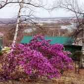 Наш рододендрон сихотинский в эту весну цвести не торопился. На южных склонах он зацвёл в середине третьей декады. А вот на сопках ближе к морю зацвёл он позже и не дружно. Было замечено, что цветочных почек на кустах маловато, поэтому цветки были редки. Вид этот является полулистопадным. То есть часть листьев опадает, но на молодых побегах вырастают новые светло-зелёные листочки. В эту весну зелёные листья росли в большом количестве одновременно с цветением. Ну, а повсеместного розово-лилового оттенка на склонах во время цветения в апреле не наблюдалось. Цветущие кусты хорошо просматривались лишь на фоне серых скал. Но впереди май, когда цветение рододендрона достигнет массовости.