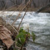 Прошлогодний апрель радовал нас гораздо больше, чем нынешний. Начало апреля на восточном и западном макросклонах заповедника очень отличается. Если на западных склонах в это время ещё царствует зима, то на восточных уже наступила прохладная весна. На восточных склонах лёд с рек уже сошёл, и цветут первоцветы, а на западных только появились первые проталины и ещё лежит снег. Но к концу апреля, когда «на западе» устанавливается плюсовая температура, весна здесь наступает стремительно, а вскоре и перегоняет весну на побережье.
