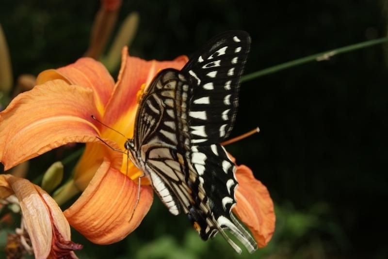 В августе часто на цветах можно было увидеть крупных бабочек — махаона уссурийского и хвостоносца Маака. У махаона гусеницы питаются на различных видах зонтичных растений, в том числе и на укропе и даже ботве моркови. Поэтому мы можем их увидеть в августе у себя на огороде, чаще на укропе. Крупная гусеница махаона зелёного цвета с чёрными полосками очень заметна на укропе, поэтому не увидеть её невозможно. А вот гусеницы хвостоносца Маака питаются листьями бархата амурского (основное кормовое растение) и на травянистом растении ясенце. Поэтому увидеть гусеницу хвостоносца удаётся не часто. Для этого надо исследовать листья бархата амурского, которое встречается не везде. Окукливаются гусеницы на кормовом растении. Но вот увидеть куколку махаона на укропе мне не удалось ни разу.