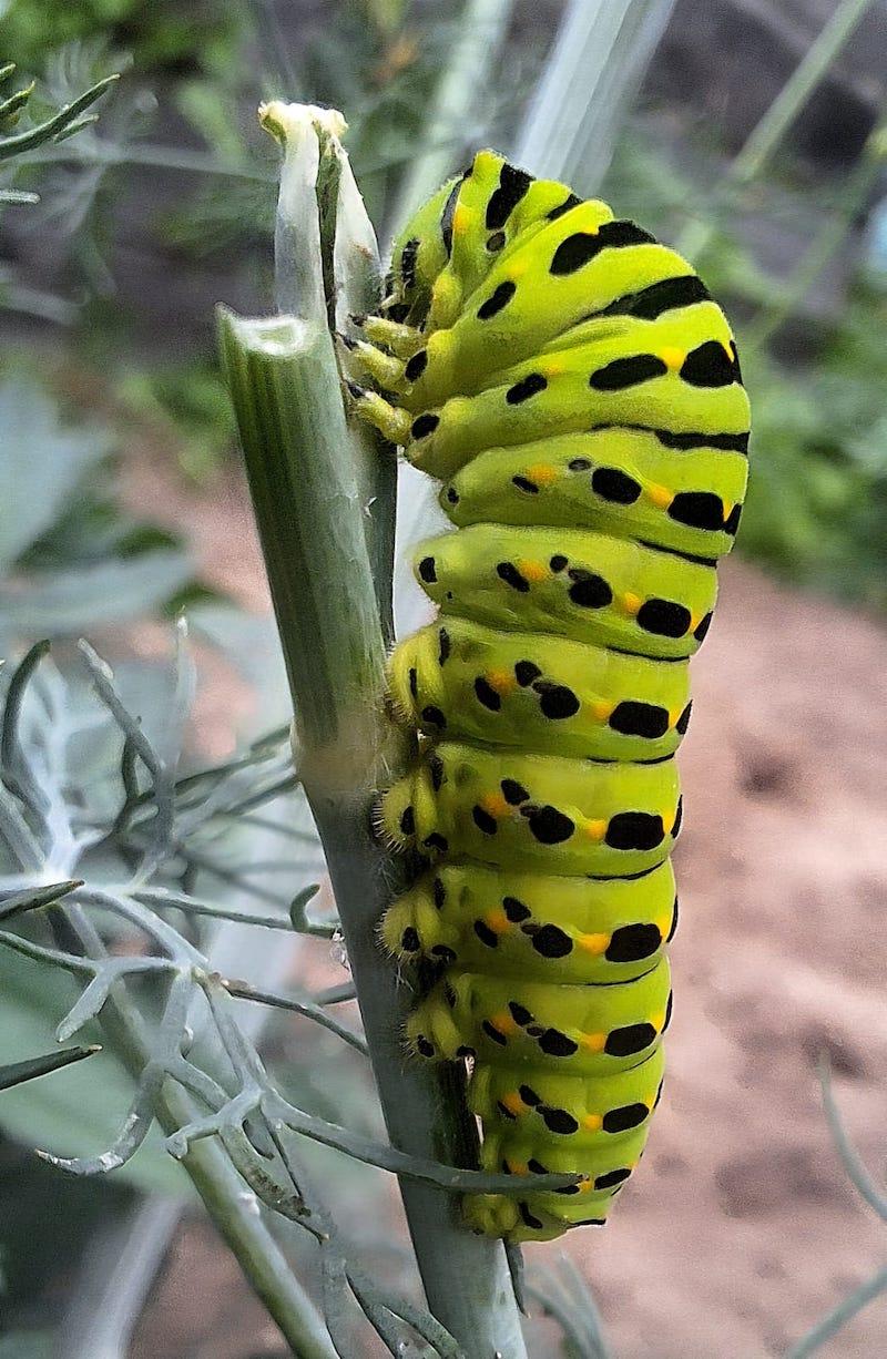 Гусеница махаона уссурийского на укропе. Авто фото: Ольга Веселкина