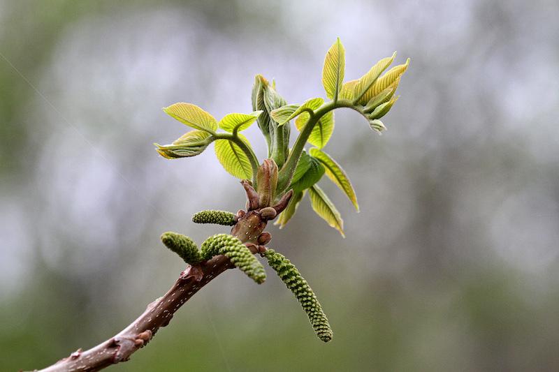 Май – время зеленения леса. С каждым днём зелёных красок становилось всё больше. В начале месяца уже мощно зеленела лиственница, быстро росли листочки на иве, тополях, лопнули почки у берёзы, ольхи. Черёмуха стояла уже сплошь зелёная, но листочки всё ещё продолжали расти. В начале второй декады лопнули почки у ильма, ореха маньчжурского, аралии, уже зеленел шиповник. На клёне мелколистном топорщились маленькие сморщенные листики коричнево-зелёного цвета. На берёзе листья были уже размером с небольшую монетку, набрала цвет черёмуха. В середине месяца лопнули почки у липы, появились мелкие соцветия на клёне мелколистном, зацвела черёмуха, а вскоре и почки на дубе лопнули. К концу второй декады зацвёл ясень — на его ветках появились бордовые шарики соцветий, которые в конце третьей декады массово падали на землю.