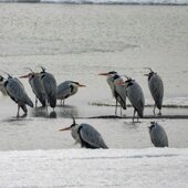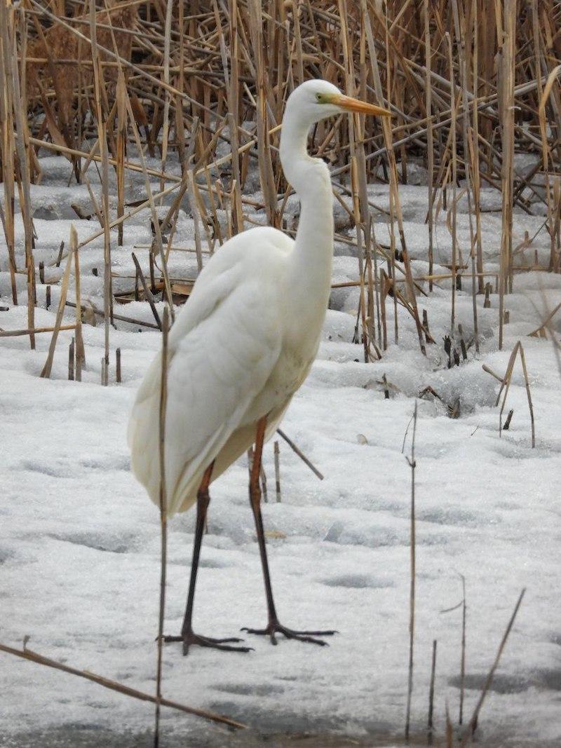 Много белых и серых цапель находились на берегу и в воде устья Вилки. Серые цапли расположились на излюбленном птицами берегу заводи, напротив устья Вилки. Заводь, как и протока, была ещё частично подо льдом.