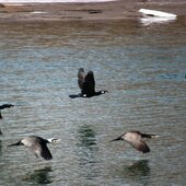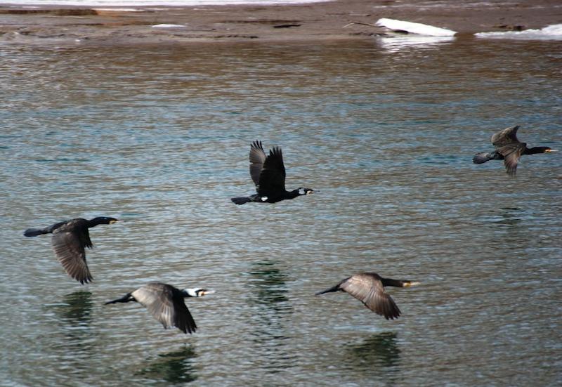 В третьей декаде марта появились у нас бакланы, озёрные чайки. Замелькали большими стаями серые скворцы, которые хорошо заметны в полёте по белым полоскам на хвосте. На берегах рек появились белые трясогузки. Был заметен и бурый дрозд.