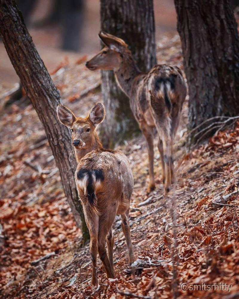 В середине марта на дороге Терней-Пластун, тянущейся через заповедник на протяжении 24-х километров, инспекторы заповедника наблюдали большое стадо пятнистых оленей. В этой части заповедника самая высокая плотность группировки этих животных. В данном случае оленей привлекла соль, которой посыпали дорогу после снегопадов. Видно было, как звери на обочине дороги наклонялись и слизывали соль с поверхности земли. Они не обращали внимания на людей, увлёкшись делом.