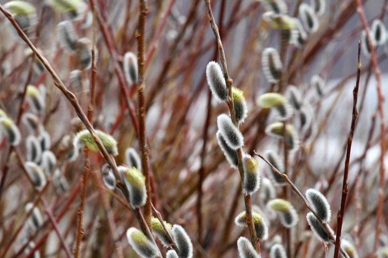 Весь март серебрились ивы, которые в народе называют вербами. Вербой называют (от латинского verbena — ветвь) цветущие ветки ивы. Видов ив у нас девять, и у каждого сроки цветения неодинаковы. У одних серебристые «барашки» появляются очень рано, когда ещё лежит снег, у других — вместе с листьями, у третьих — после распускания листвы. У одних серёжки крупные, у других мелкие. «Белые овечки бегают по свечке» – тонко подмечено о весенней иве в народной загадке.