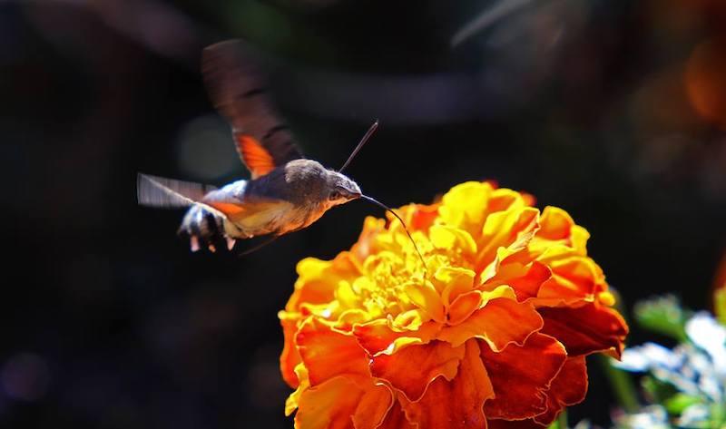 Кстати, бражники являются самыми быстрыми по полёту насекомыми в мире, способны развивать скорость до 60 км/ч. Они зависают над цветами, порхая крыльями так, что их почти не видно, выпрямляют свой длинный хоботок и погружают его в цветок, чтобы питаться нектаром для поддержания свой формы, а не роста – так называемое дополнительное питание так как тело взрослого насекомого строится за счёт питания гусеницы, то есть на более ранней стадии развития.