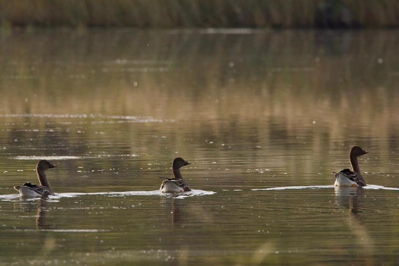 Весь сентябрь большие стаи ласточек сидели на проводах и летали в воздухе. Ласточек было то много, то мало — одни улетали на юг, другие подтягивались и вновь сбивались в стаи и вновь улетали. Так до конца сентября. Высоко в небе появились длинные цепочки гусей, тоже потянулись на юг. Гуси и утки стали заметны на озёрах и речках. Вот над озером Благодатным пролетел с гоготаньем клин гусей, но они пролетели мимо озера дальше на юг, видимо, ещё не устали. А вот из-за мыса Северного вынырнул большой клин уток. Они с кряканьем подлетели к озеру и сели на водную гладь.