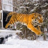 Ну, и немного скажем о тигриных делах, тем более, на юге Дальнего Востока наступил тигриный бум. То и дело на сайтах и в СМИ появляются сообщения, что в населённые пункты выходят тигры и охотятся на собак, пугая людей. Специалисты охотнадзора отлавливают конфликтных тигров, помещают в реабилитационном центре для исследования состояния зверей и решения их дальнейшей судьбы. Зачастую тигры оказываются покалеченными, с застарелыми ранами, истощёнными. То есть не от хорошей жизни они ищут более лёгкую добычу, за которой не надо гоняться. Тем более, в тайге по-прежнему мало кабанов – основной пищи тигров. Но попадаются и здоровые тигры, которые не отказываются от собак.