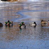 На Вилке зимуют с десяток крякв. Это стало уже обычным явлением. Они прячутся под высоким берегом, а если их спугивают, взлетают с громким кряканьем, прижав к телу свои морковно-красные лапы. Тут же на Вилке на ледяных заберегах заметны две бурые оляпки, которые то и дело ныряют в воду за кормом, выныривают и подолгу, сидя на льду, трясут свой корм. Но сидят они не рядом, а на разных участках, поодаль друг от друга. Иногда они с криками гоняются друг за другом, чего-нибудь не поделив.