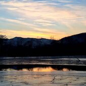 В третью декаду января оттепель продолжилась. Днём держались небольшие плюсовые температуры, от нуля до двух градусов. В конце декады на Серебрянке местами образовались промоины, лёд начал таять. 27 и 28 января мы наблюдали редкие снежинки, которые кружились в воздухе уносимые ветром. На землю они не ложились. В эти дни южный циклон двигался над Японским морем. Почти везде в Приморье выпал снег, а у нас чуть-чуть припорошило землю. Свежий белоснежный снежок особенно был заметен на льду реки. Он чётко оконтуривал места недавно появившихся промоин. Всего за третью декаду выпало 0,3 мм снега, а среднедекадная температура воздуха составила -5,8ºС, то есть потеплело значительно. Третья декада января оказалась самой тёплой. За весь месяц выпало 1,0 мм снега при норме января 17 мм. Январь выдался в этом году необычным, он оказался гораздо теплее своего предшественника – декабря (-10,3ºС).