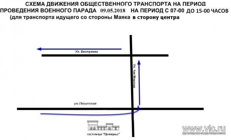 Во Владивостоке 9 мая будет временно изменена схема движения городского общественного транспорта. Это связано с проведением военного парада и вечерних праздничных мероприятий на центральной площади города.