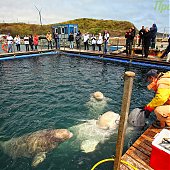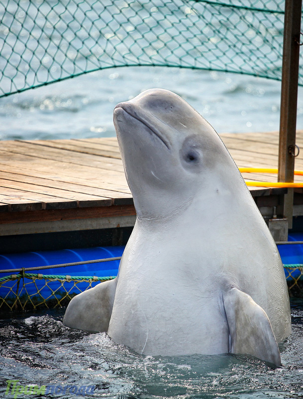 Но скоро у жителей Приморья появится новая возможность пообщаться с улыбчивыми морскими обитателями. Сейчас белухи находятся на базе изучения морских животных на Русском, и, по словам представителя пресс-центра Приморского Океанариума, уже скоро будут переселены в сам океанариум.