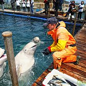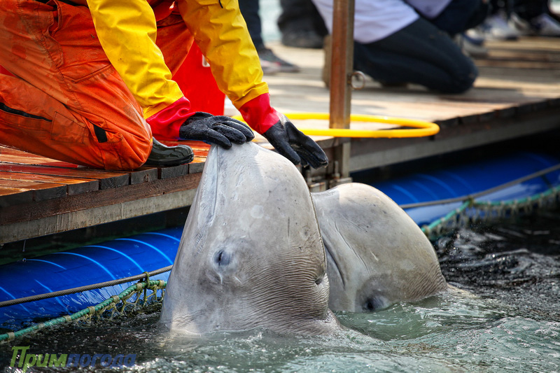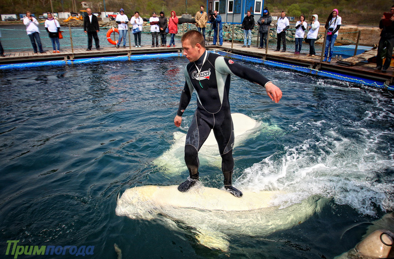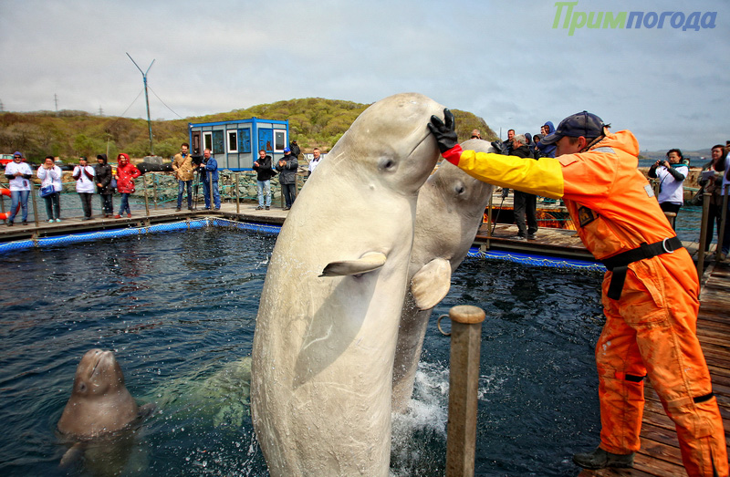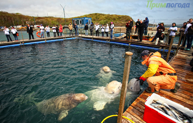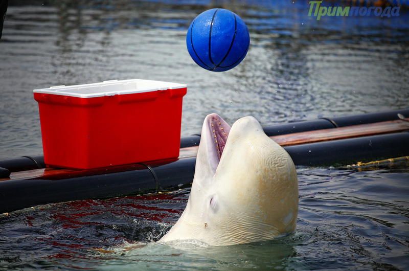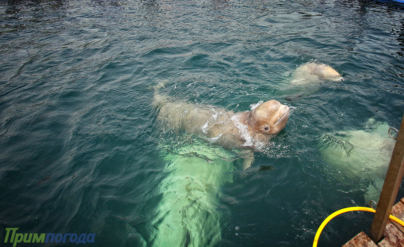 Ася Орлова побывала на тренировке белух на базе изучения, и редакция Примпогоды предлагает вам полюбоваться на этих замечательных животных в ее фоторепортаже.
