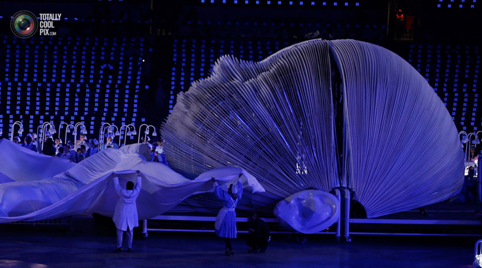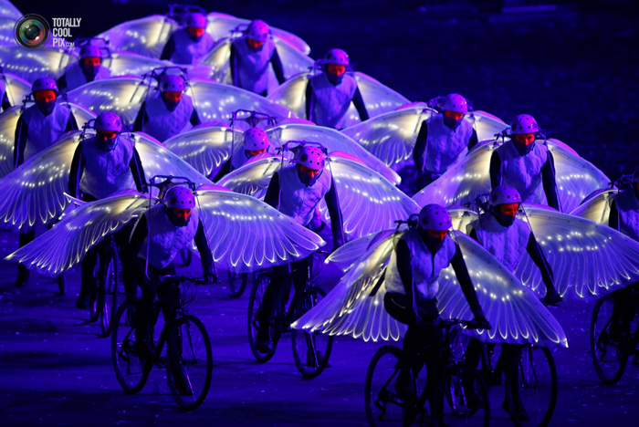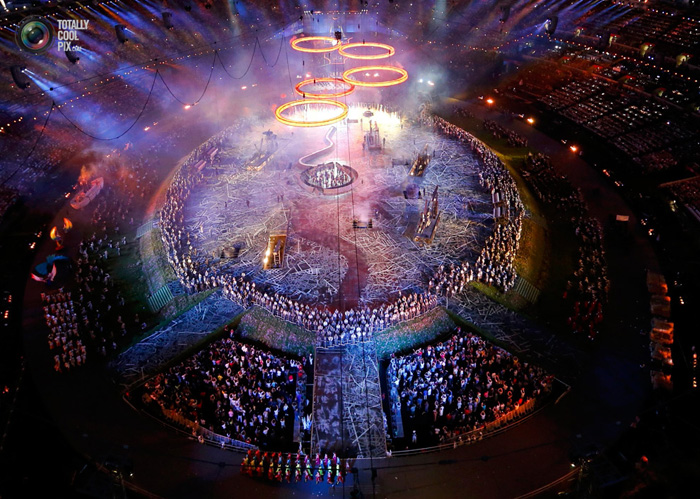 Торжественное открытие длилось больше трех часов. Праздничное шоу поставил режиссер Дэнни Бойл. Там были заводы, вертолеты, герои сказок и боевиков, детский хор и Пол Маккартни.