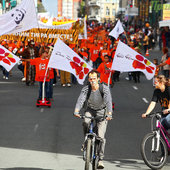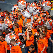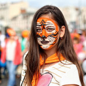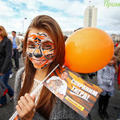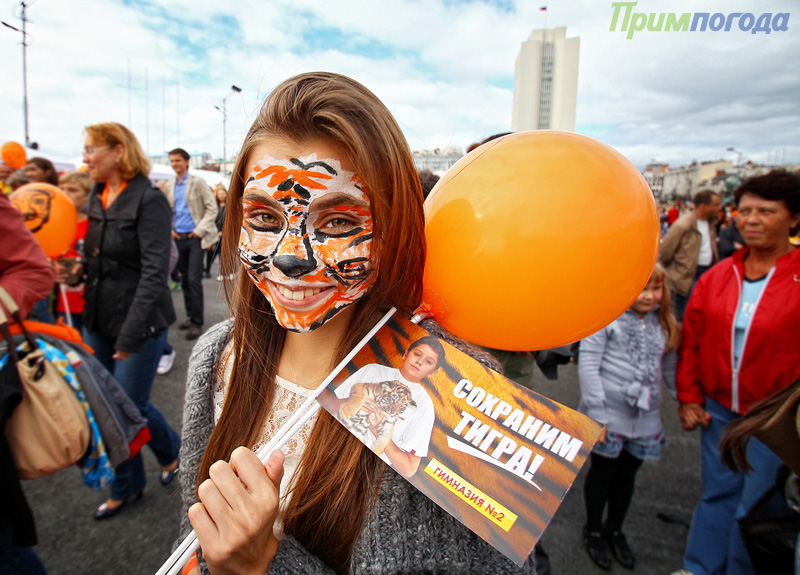 В последнее воскресенье сентября во Владивостоке состоялось грандиозное шествие горожан, одетых в яркие тигриные костюмы и маски. В этом году в "День тигра", пожалуй, как никогда центр города буквально был окрашен в оранжевый цвет.