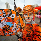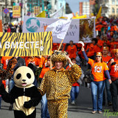 В карнавальном шествии по улицам Владивостока приняло участие 3000 человек. Сотни людей в тигриных масках и костюмах прошли от остановки Покровский парк до центральной площади, где колонну встречали ещё 1000 человек.