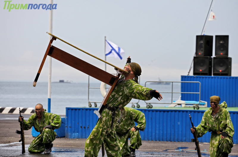 На территории Водной станции ТОФ прошел военно-спортивный праздник, театрализованное представление "Ходили мы походами", демонстрация боевых возможностей оружия и техники флота, а также показательные выступления морских пехотинцев и бойцов спецназа.