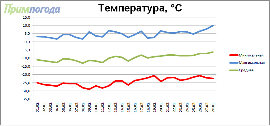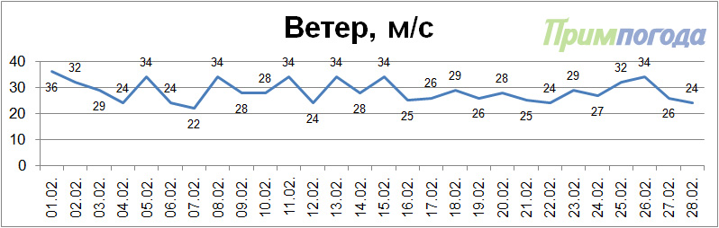 В Приморье этот месяц всегда отличался своим особенным характером. О том, каким был февраль во Владивостоке, вы можете узнать из специально подготовленных нами графиков, характеризующих его по показателям многолетних метеонаблюдений — с 1917 года по 2013 год.