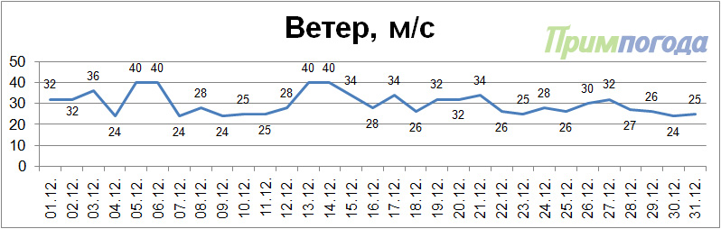 В Приморье этот месяц всегда отличался своим особенным характером. О том, каким был декабрь во Владивостоке, вы можете узнать из специально подготовленных нами графиков, характеризующих его по показателям многолетних метеонаблюдений — с 1917 года по 2012 год.