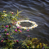 И, конечно, не обошлось без традиционного для этого праздника пускания венков на воду. Девушки сами плели их вначале фестиваля во время небольшого, но очень популярного мастер-класса. Завершился фестиваль непременным атрибутом праздника — очищающим Купальским костром, через который с азартом прыгали гости и участники мероприятия.