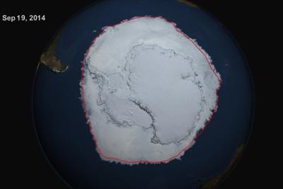 Максимальная протяженность ледового слоя за отдельно взятый день была зафиксирована в этом году 20 сентября, когда морской лед покрыл 20,14 млн км2. Средний максимум за пять дней кряду был достигнут 22 сентября, когда льдом затянулось 20,11 млн км2 антарктических вод.