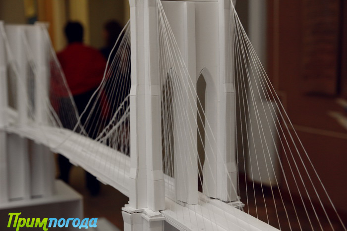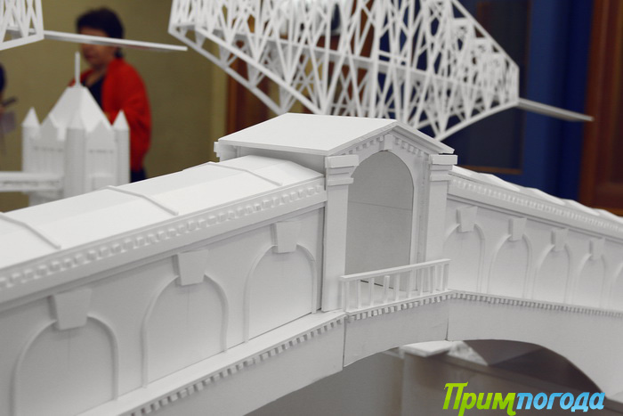 Пока работы расставлены хаотично — однако уже к субботе будут выстроены у проходов, чтобы можно было остановиться у макета, рассмотреть детали, представить себя на этом мосту. Все проекты будут подписаны и снабжены цветными иллюстрациями. Также в зале будут присутствовать авторы «мостов», а потому каждый, кто захочет что-либо узнать о макете, будет иметь такую возможность.