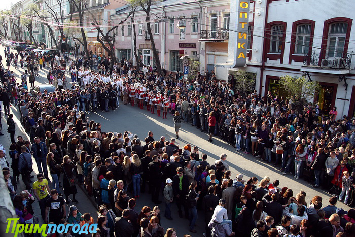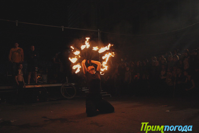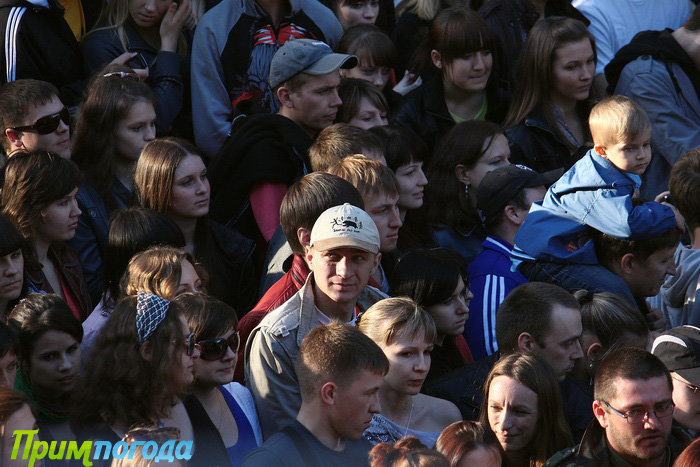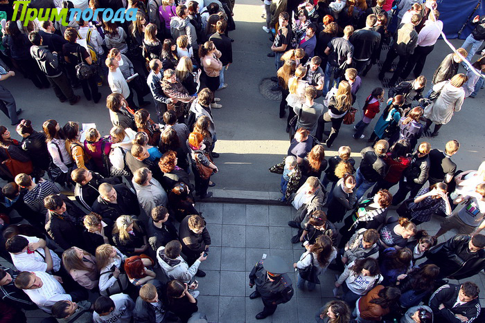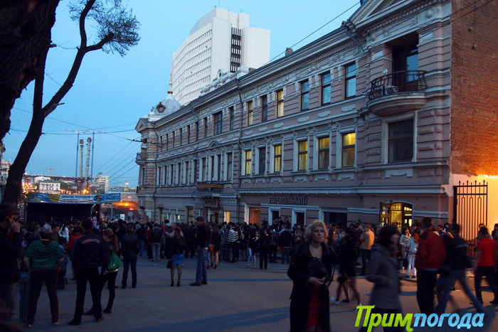 То ли из-за погоды, то ли из-за возникшей в наших людях тяги к высокому, образовались невероятные очереди в музеи. Вернее, в Музей им. В.К. Арсеньева на Светланской, 20. Это была даже не очередь (как в прошлом году), перед входом образовалась огромная толпа, плавно перетекающая в толпу, наблюдавшую за выступлениями местных групп. В музей удавалось попасть даже не с первого раза — в итоге вход брали штурмом, не видя ступенек, оказываясь в мертвой схватке окружающих (в автобусах в час пик такого не бывает).