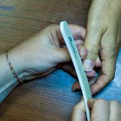 После шопинга с Екатериной — стилистом центра красоты «Je t’aime», у нашей героини Ларисы было чудесное настроение! И она, уже освоившись в роли настоящей дамы, отправилась на маникюр и коррекцию бровей.
