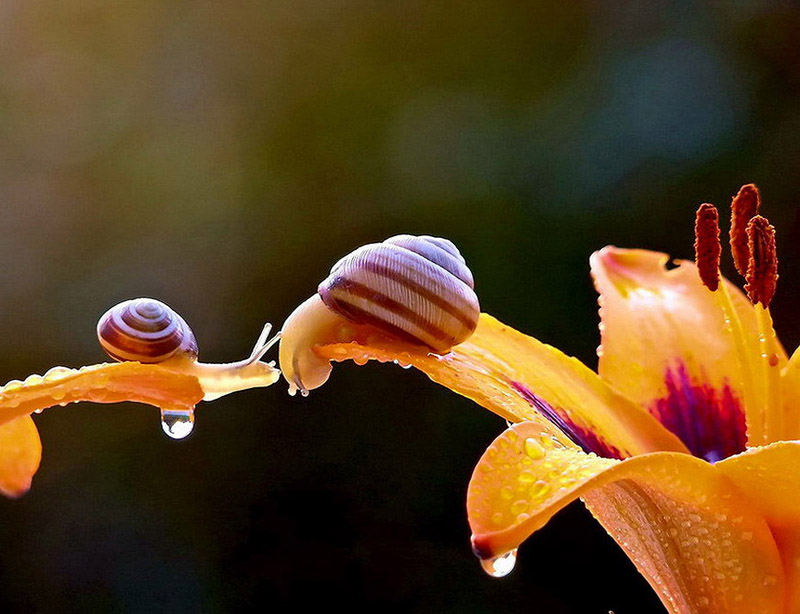 макроснимки. Герои его фотографий — улитки, муравьи, божьи коровки — исследуют лесные просторы, справляются с погодой, покоряют вершины, словно ожившие персонажи французского анимированного сериала Minuscule — Крохи.