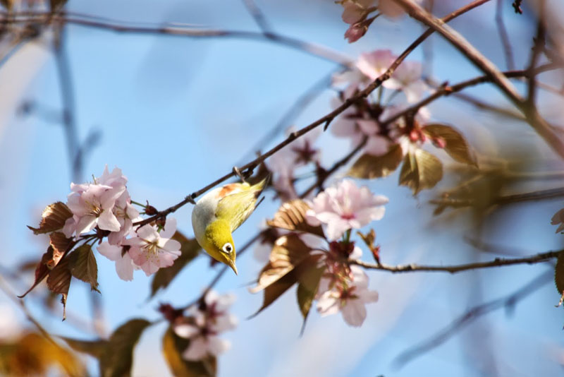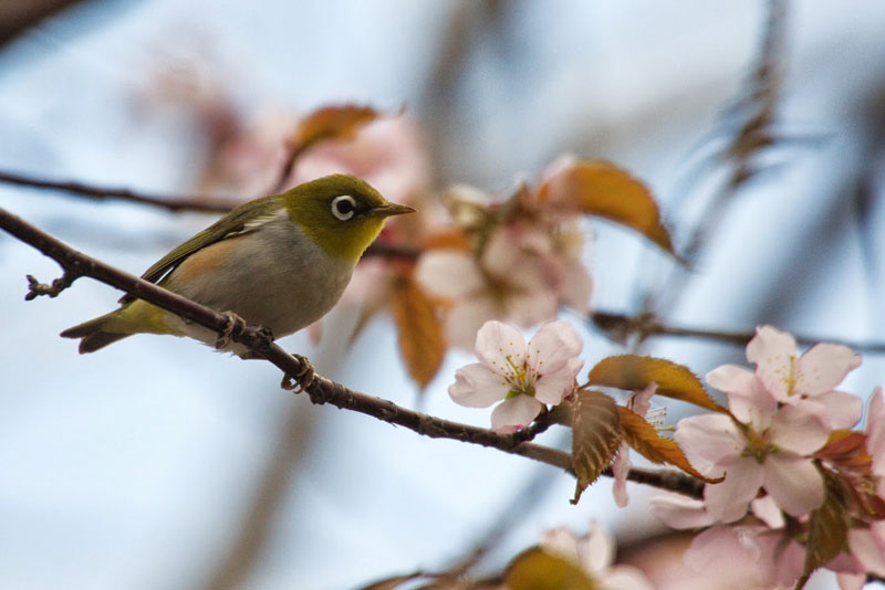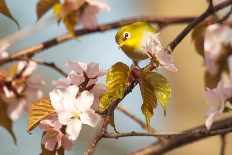 Большинство сразу вспомнит колибри из Америки, те, кто бывал в юго-восточной Азии, возможно, назовут нектарниц, но мало кто знает наших белоглазок. Эти малютки обычно держатся в кронах, и увидеть их непросто. Но весной, когда они целыми стаями пьют нектар на сливах, вишнях, их можно и рассмотреть, и сфотографировать, главное сесть тихонько, прислушаться и подождать. Если присматриваться внимательно, то их можно заметить и на других деревьях, но это уже сложнее.