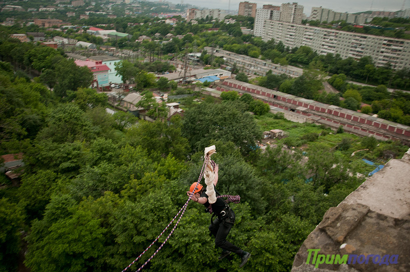 Во Владивостоке объединение поклонников роупджампинга DropRope Vladivostok провели массовые мероприятия 21 и 22 июля. Любители острых ощущений прыгали с недостроенной больницы на Саперной улице. Высота здания — около 30 метров.