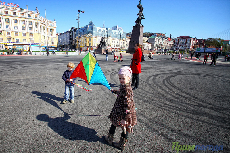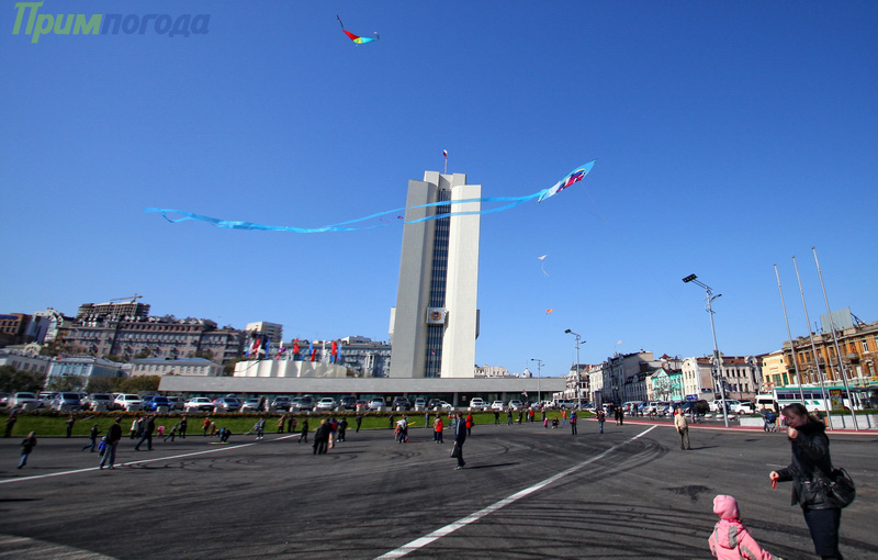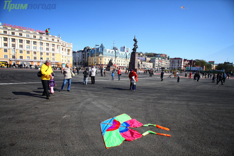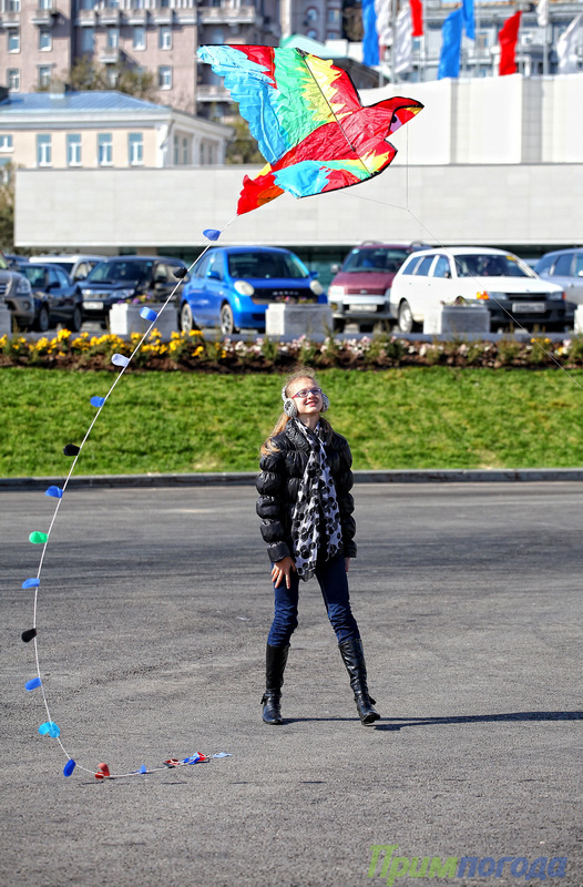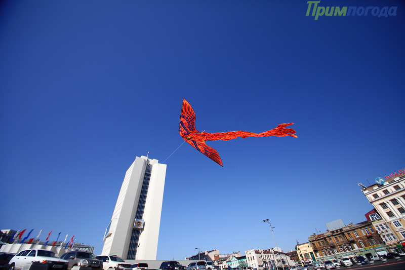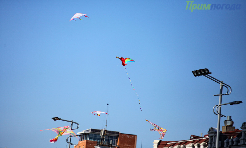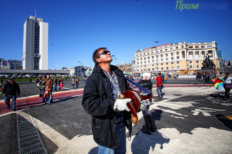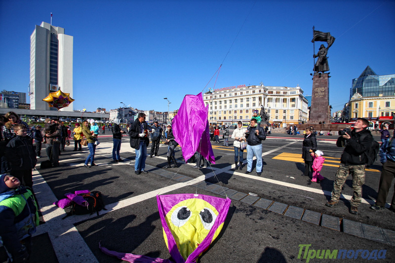 Сегодня Приморский край во власти активного циклона, и все мысли о том, как преодолеть непогоду. А не далее, чем вчера безоблачное небо Владивостока украшали воздушные змеи. И это совсем не случайно: в рамках Всемирного дня воздушных змеев (World Kite Day) на центральной площади Владивостока состоялся фестиваль воздушных змеев «Все выше и выше». В красочном мероприятии принимали участие как новички, так и те, кто запускает змеев уже несколько лет.