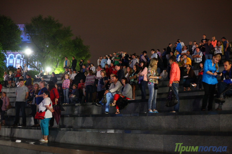 Несмотря на дождь, около 5 тысяч жителей и гостей Владивостока собрались вчера на набережной Спортивной гавани, чтобы увидеть приуроченное к саммиту АТЭС уникальное фото-музыкальное представление "XXI. Мой Тихий океан", организованное администрацией города и проектом РИА Новости "Fotofond — территория фотографии".