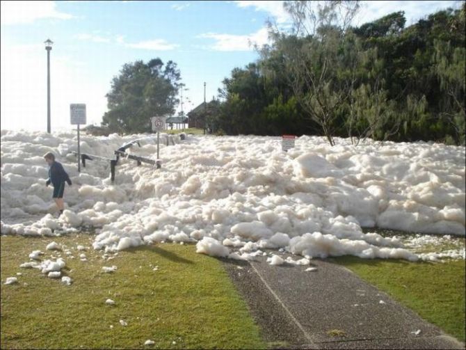 По окончанию циклона на Солнечном берегу штата Квинсленд появилась пена, которая достигла трех метров в высоту. Белые хлопья целиком накрыли некоторые дороги, поэтому полицейским пришлось перенаправить движение автомобилей, чтобы избежать потенциально опасных ситуаций.