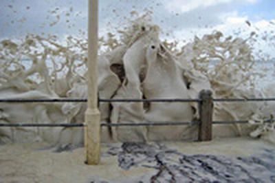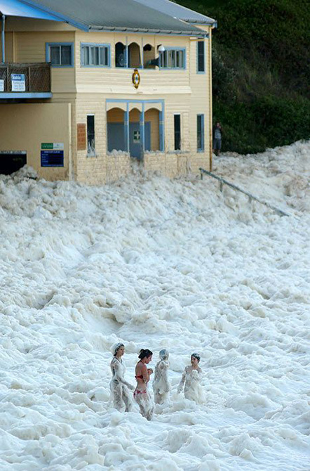 Пена считается безвредной, несмотря на то что появляется из грязной воды, и жители побережья с удовольствием проводят в ней время.