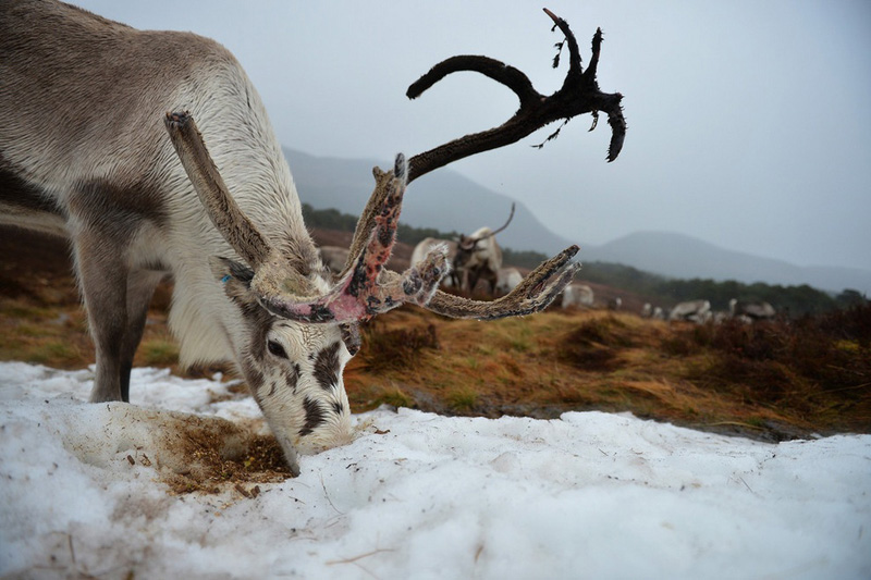 В Великобритании первое одомашненное стадо северных оленей появилось всего несколько десятилетий назад — в 1952-ом году в Шотландии. Это удалось сделать шведскому предпринимателю Микелю Утси и его супруге Этель Линдгрен. Сейчас в одомашненном оленьем стаде Cairngorm Reindeer Herd — 130-150 голов, хотя в самом начале насчитывались единицы.