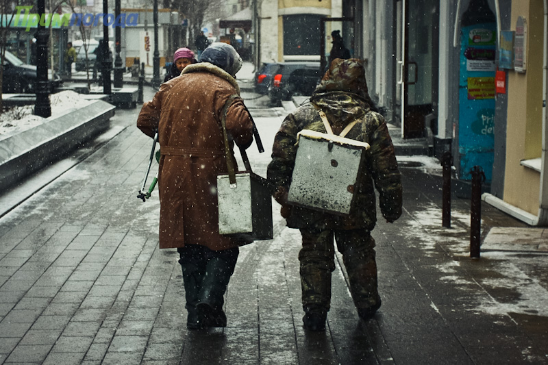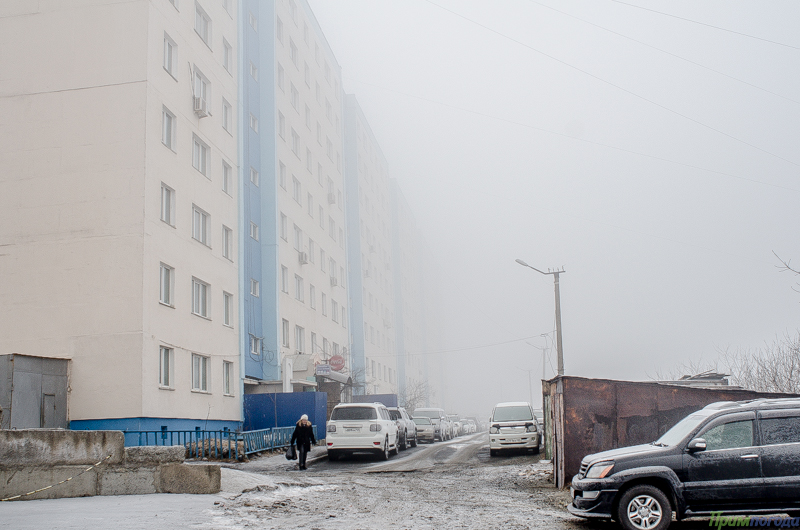 Многообразием погодных явлений отмечены выходные дни и во Владивостоке. В субботу — переменная облачность и без осадков. В воскресенье с утра город постепенно накрывало туманом, и ближе к обеду в отдельных районах Владивостока видимость в тумане не превышала 200 м. Во второй половине дня прошел небольшой снег. К вечеру сквозь облака вновь показалось солнце.