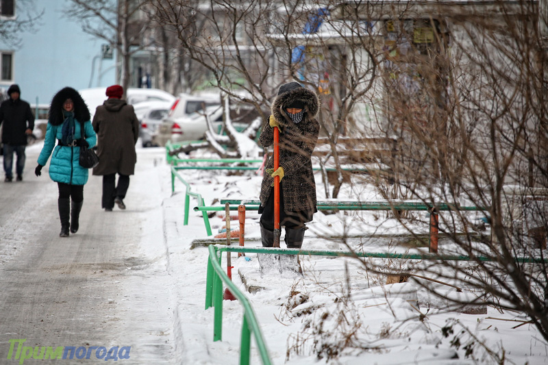 Вслед за циклоническим вихрем с севера происходило постепенное вторжение холодной воздушной массы на юг Дальнего Востока. Поэтому суточный ход на большинстве станций Приморья отсутствовал. Температурный фон был практически одинаков, как в ночные, так и в дневные часы: -1…-8ºС. Лишь на восточном побережье и на северо-востоке края, куда не дошел холод, днем было тепло (0…+3ºС). Вечером небольшой снег сохранялся в восточной половине края. В прибрежных районах усилился северный ветер, во Владивостоке порывы достигали 20-22 м/с.