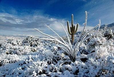 В Мексике продолжается редкая для этих широт погодная аномалия: вторые сутки подряд на севере страны идет снег, а температура воздуха опустилась ниже нуля.