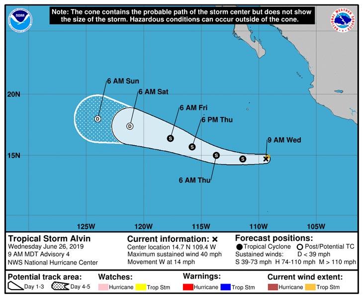 Но по прогнозам 27-28 июня депрессия все же достигнет стадии тропического шторма, а скорость ветра превысит 30 м/с. Таким образом, он может стать первым тропическим штормом в этом регионе и получит имя «Элвин».