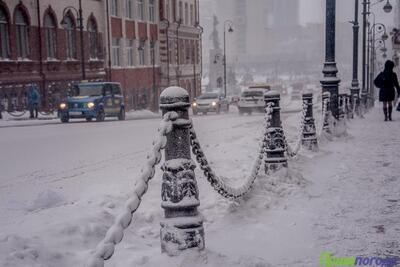 Во Владивостоке с середины дня идет снег, вечером усилится. На дорогах местами гололедица, снежный накат. Усилится северный ветер, начнется метель.