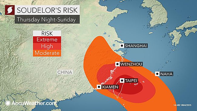 В данное время тропический шторм находится на пути к острову Тайвань на расстоянии около 2 000 км. Такой путь он преодолеет к выходным. Ожидается, что основной удар «Суделор» нанесет по Тайваню в пятницу, при этом «глаз» супертайфуна пройдет над Тайбэйем.