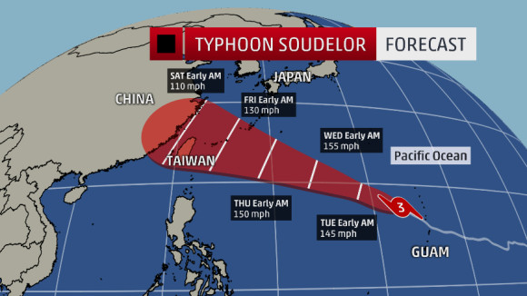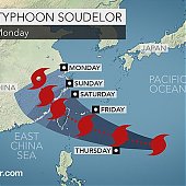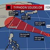 Супертайфун «Суделор» уже признан Совместным центром предупреждения тайфунов самым сильным в этом году. В настоящее время ему уже присвоена максимальная, пятая категория. Порывы ветра в районе тайфуна достигают 354 км/ч.