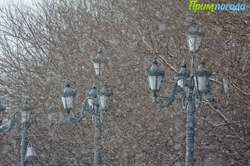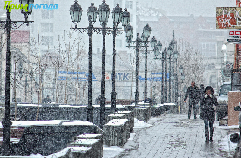 Вчера Приморье, словно зачарованное,находилось во власти снежного циклона. Пожалуй, такого снега мы не видели с прошлого года. Смеем заметить, что похожий по характеру циклон настигнет Дальний Восток уже завтра, как своеобразный подарок природы. Несмотря на трудности, возникающие по причине осадков, мы вновь призываем вас наслаждаться тем, что нам доступно. После столь бесснежной зимы самое время испытывать искреннюю радость, словно в детстве, от падающих с самых небес снежинок!