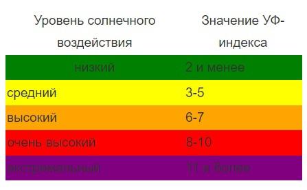 Чем выше УФИ, тем больше потенциал для нанесения вреда коже и глазам и тем меньше время, необходимое для нанесения такого вреда.