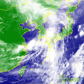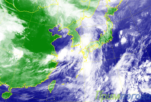 Сегодня утром он находился вблизи западного побережья Корейского полуострова. В течение дня циклон перевалит через Корею и вечером выйдет в северо-западную часть Японского моря.